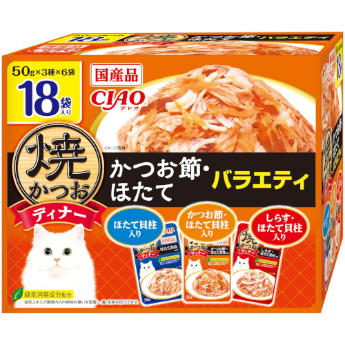 ●かつお、ほたて貝柱、ほたてエキス、かつお節、寒天、糖類(オリゴ糖等)、でん粉、植物性油脂、ミネラル類(Na、P、Cl)、増粘安定剤(増粘多糖類、加工でん粉)、調味料(アミノ酸)、ビタミンE、紅麹色素、緑茶エキス