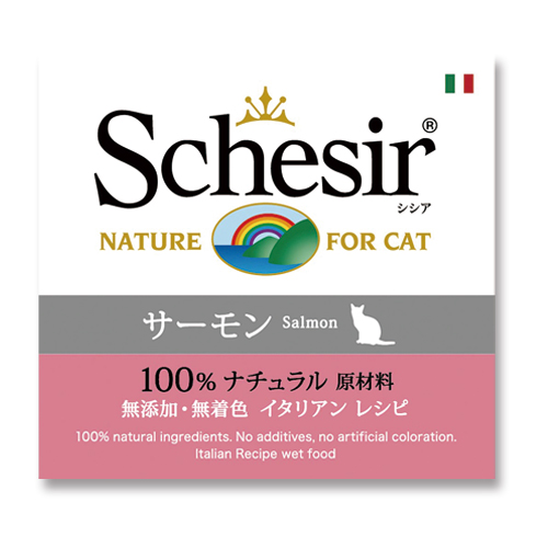 ●成猫用●クッキングウォーター●原材料:サーモン70%、米1.2%、ビタミンA1325IU、ビタミンD3110IU、ビタミンE15mg、タウリン160mg●85.2kcal/100g●生産国:タイ