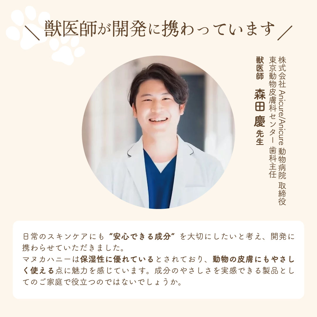 ●本商品のクリームはマヌカハニー由来の自然な色味をしており、毛に付着すると一時的に色が残ることがあります。気になる場合は、ティッシュなどで軽く拭き取ってください。
