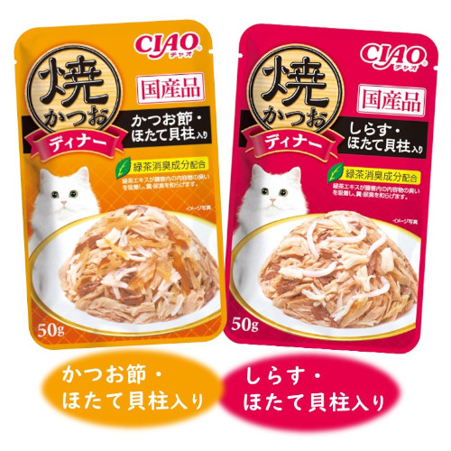 ●かつお、ほたて貝柱、ほたてエキス、寒天、糖類(オリゴ糖等)、でん粉、植物性油脂、ミネラル類(Na、P、Cl)、増粘安定剤(増粘多糖類、加工でん粉)、調味料(アミノ酸)、ビタミンE、紅麹色素、緑茶エキス