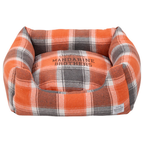 ●ウール混の暖かいタータンチェックのカドラー。たっぷり入った中綿でふっくらふかふか。愛犬も心地よく過ごせます。