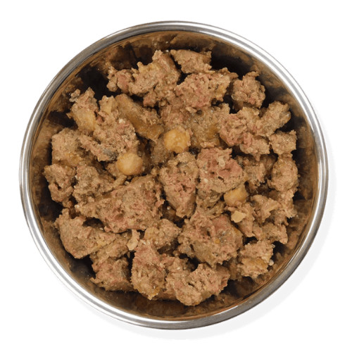 ビーフ85%(牛肉60%、牛スープ25%)、ヒヨコマメ、パースニップ、ホウレンソウ、リンゴ、オレンジ、ひまわり油、サーモンオイル、海藻、ルーサン、パセリ、セロリ、チコリ根、シナモン、ウコン、アニシード、ミネラル類