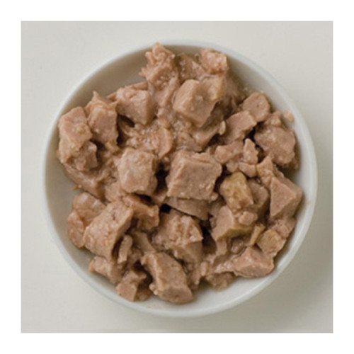 ●チキンスープ、チキン、えんどう豆蛋白、タピオカスターチ、ダック、第三リン酸カルシウム、グァーガム、サンフラワーオイル、アボカドオイル、タウリン、サーモンオイル、塩化カリウム、ミネラル(酸化亜鉛、還元鉄、亜セレン酸ナトリウム、硫酸マンガン、アミノ酸銅キレート、ヨウ化カリウム)、塩化コリン、ビタミン(ビタミンE、ナイアシン、ビタミンB1、ビタミンA、ビタミンB12、ビタミンB6、パントテン酸カルシウム、ビタミンB2、ビオチン、ビタミンD3、葉酸、ビタミンK)、硫酸マグネシウム