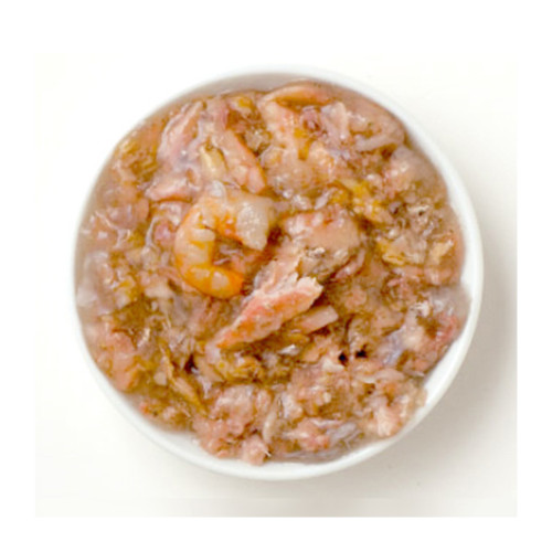 ●イワシ、スープ、タピオカスターチ、サンフラワーオイル、エビ、カニ肉、グァーガム、第三リン酸カルシウム、アボカドオイル、タウリン、塩、ミネラル(酸化亜鉛、還元鉄、亜セレン酸ナトリウム、硫酸マンガン、アミノ酸銅キレート、ヨウ化カリウム)、ビタミン(ビタミンE、ナイアシン、ビタミンB1、ビタミンA、ビタミンB12、ビタミンB6、パントテン酸カルシウム、ビタミンB2、ビオチン、ビタミンD3、葉酸、ビタミンK)、塩化カリウム、塩化コリン