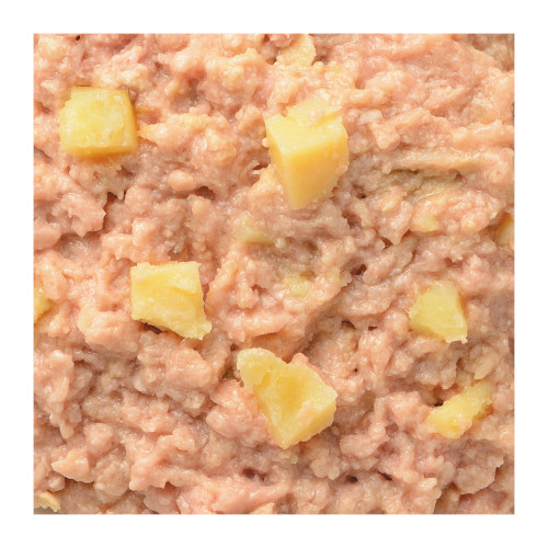 【特長】●鶏肉と鶏ささみに食物繊維を含むさつまいもを皮付きのまま加え、食べやすいミンチ状に仕上げました。