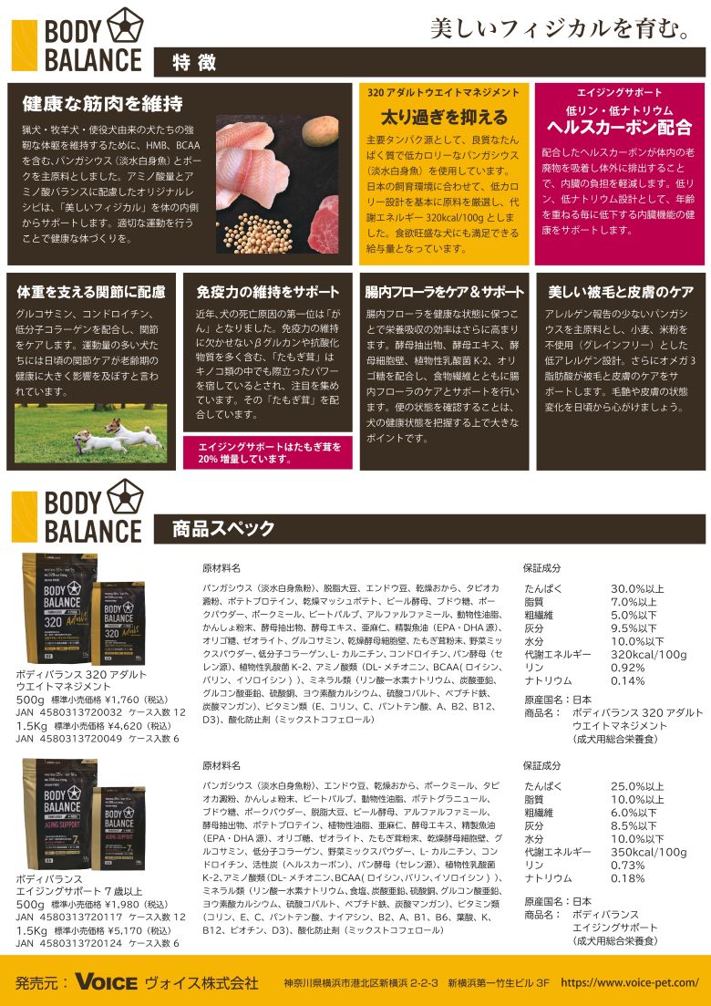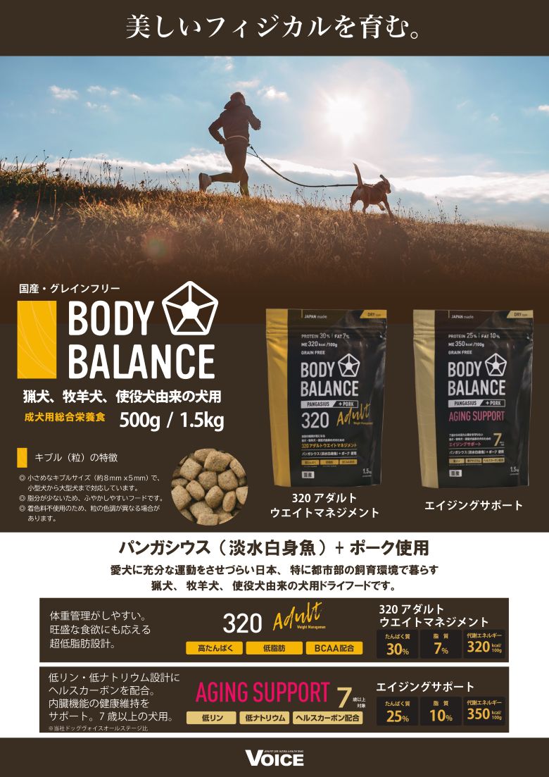 ●BODY BALANCEのドライフードは、この飼育環境のなかで特に太りやすい大型犬・中型犬たちに、ボディコンディションスコア〈BCS3 理想体型〉を維持することを栄養設計の方針としています。