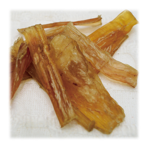 新鮮な牛のアキレス腱を、食べやすく乾燥。コラーゲンなどのタンパク質を含むため発育期や産前・産後などに当たるペットにもぴったり。しっかりした噛み心地で、噛むことでストレス発散、歯と歯茎の健康維持をサポート。保存料、着色料、発色剤、酸化防止剤は無添加。