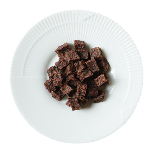 お肉がたっぷりついている牛たん皮を一度ミンチにしてか食べやすいキューブ状に。ご褒美やトレーニングにも使いやすいサイズ。