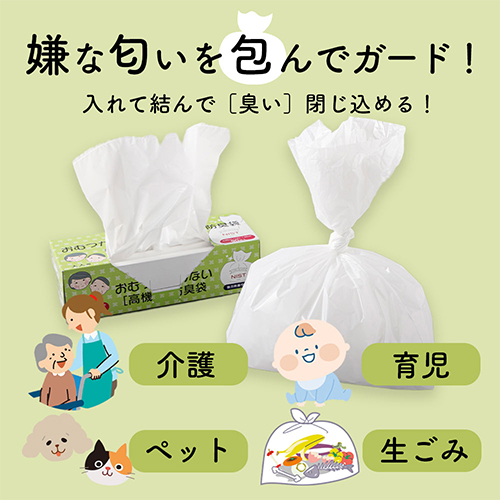 ・高い防臭力で部屋もゴミ箱もニオイ軽減・袋に入れて結んで捨てるだけの簡単ステップ