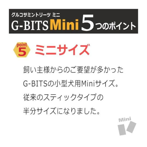 ●G-BITSグルコサミンの小型犬用Miniサイズが登場。従来のスティックタイプの半分になりました。
