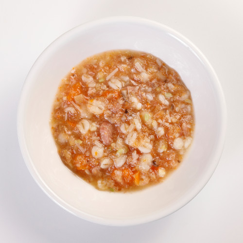 ●鶏肉とやさい:鶏肉、かぼちゃ、にんじん、ブロッコリー、大麦、鶏がらスープ、米油、フラクトオリゴ糖、寒天、こんにゃく粉、乳酸菌(フェカリス菌、クリスパタス菌)