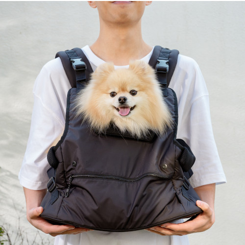 ●ペットの体重を分散し、肩や腰への負担を軽減する前抱き専用キャリーバッグ。