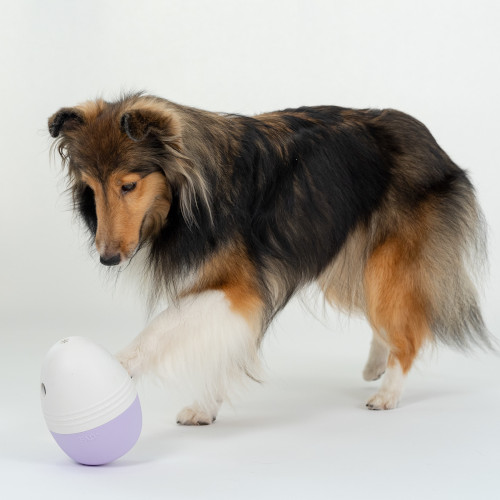 ●中にトリーツを入れて、前脚や鼻先で上手に転がしたらサイドの穴からご褒美ゲット!
