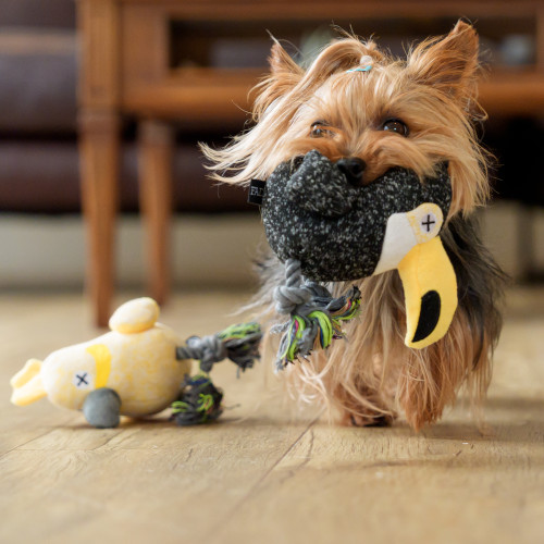 ●にくめない表情とキューキュー鳴るスクイーカーに、愛犬も夢中!