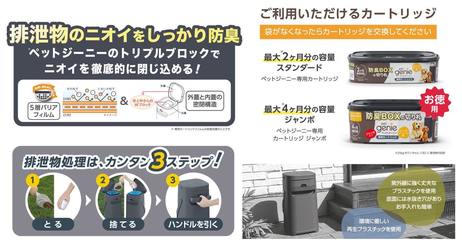●ゴミ袋要らずで地球に優しく、糞尿をまとめて捨てられ経済的。
