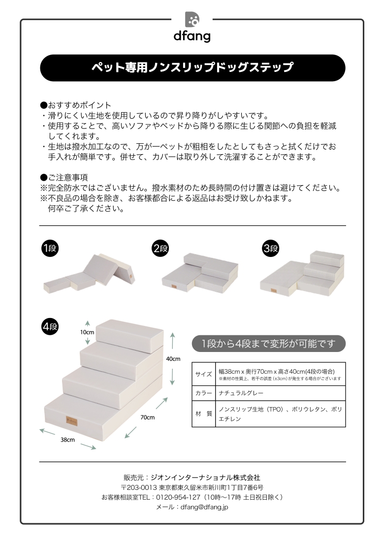 1段から4段まで自由に高さを調節できるドッグステップです。