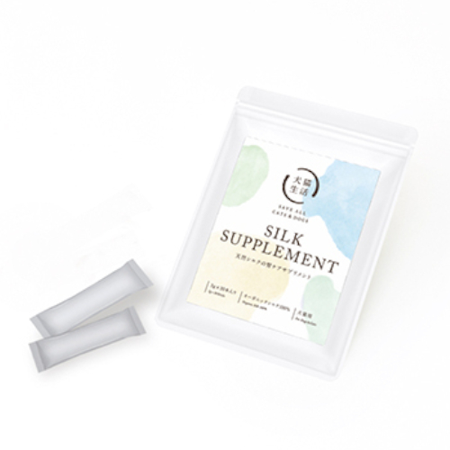 特許製法の天然シルク成分で腎臓の健康を維持できる、腎ケアサプリです。 ナノレベルの多孔質構造で難消化性のシルクフィプロインは、 体内のアンモニアなどの残留物を吸着し、体外へ排出する働きが期待されています。 また、シルクの抗酸化作用により、体内環境の維持をサポートします。 世界基準 GOTS認証オーガニックシルク100%を使用。国産&無添加※で安心にこだわりました。 無味無臭、いつものごはんにかけるだけの簡単習慣で飼い主さまも続けやすい腎ケア商品です。