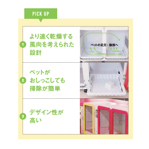 ●床下通風方式を取り入れた対流式の風がペットの毛をやさしくつつみ、ドライイングします。