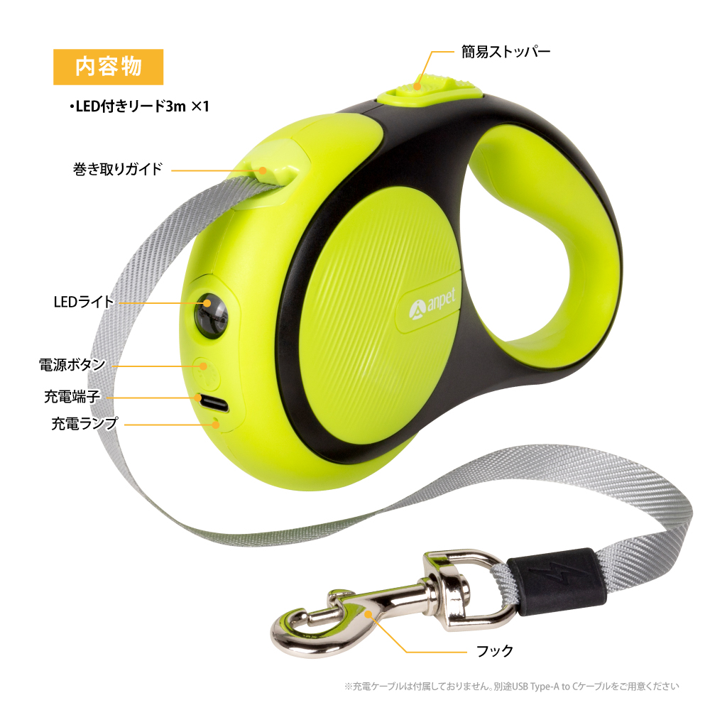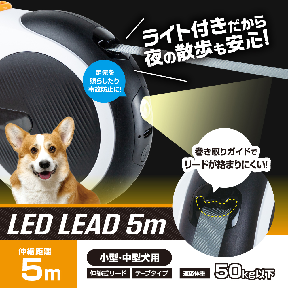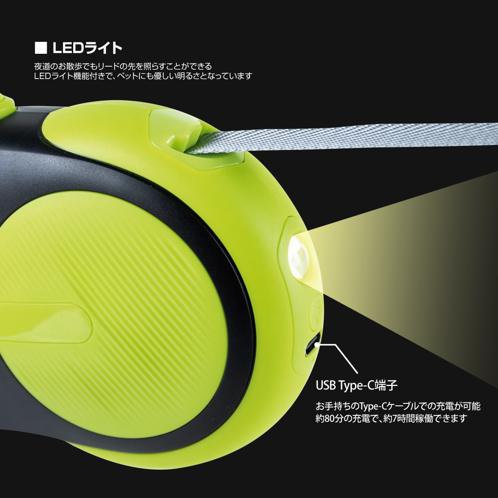 ●リードの長さ:約5m●適応体重:50kg以下●適応サイズ:小型〜中型犬まで