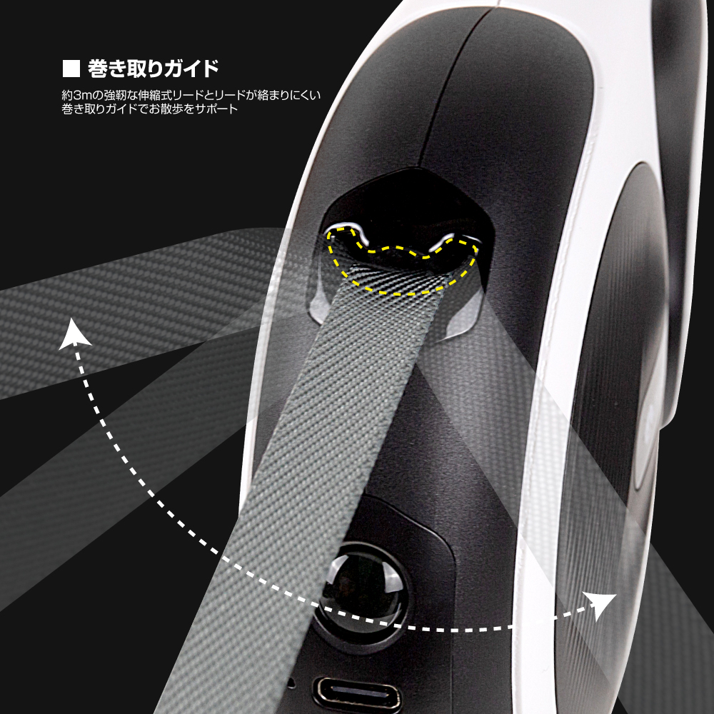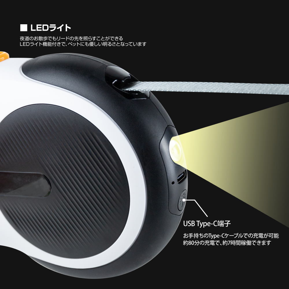 ・ホワイト&ブラック 5m:500mAhのバッテリー内蔵でフル充電時間は約90分・約8時間LEDライトを使用可能