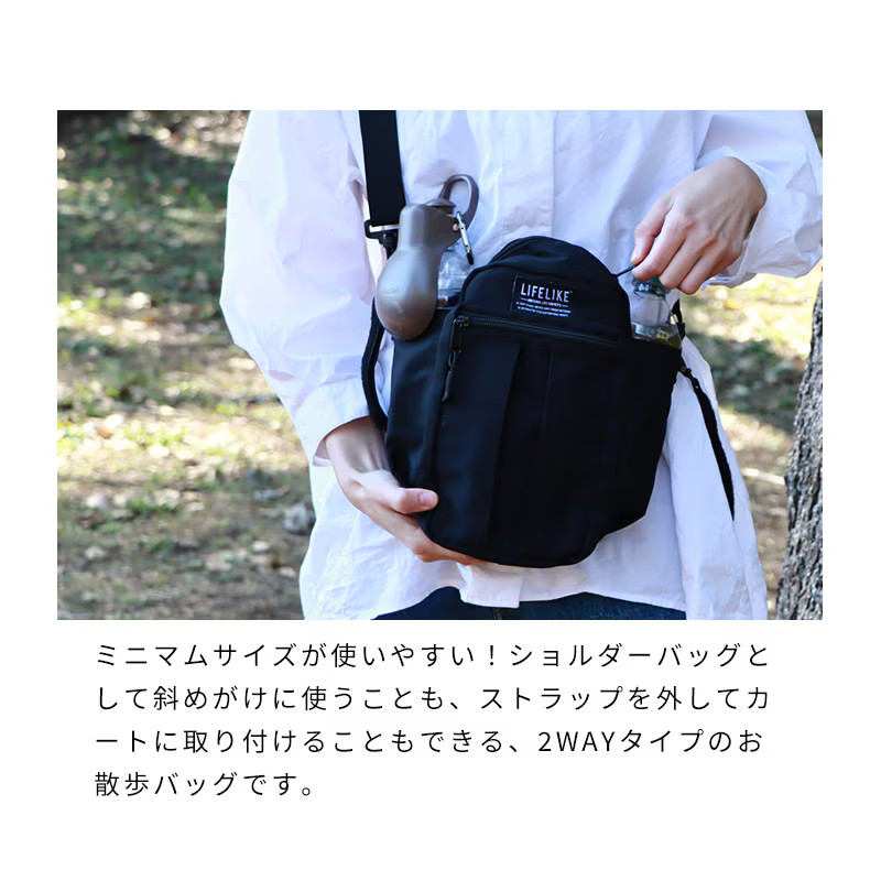 ミニマムサイズが使いやすい!ショルダーバッグとして斜めがけに使うことも、ストラップを外してカートに取り付けることもできる、4WAYタイプのお散歩バッグです。
