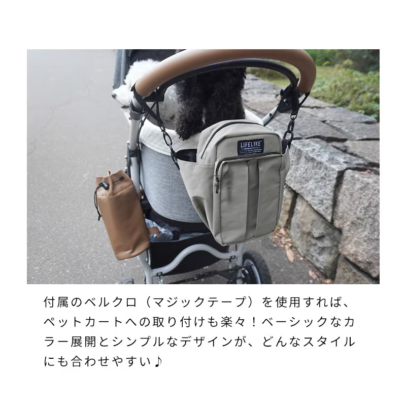 【特長】●付属のベルクロ(マジックテープ)を使用すれば、ペットカートへの取り付けも楽々!●お出かけ時の必需品をスッキリと持ち歩けます。