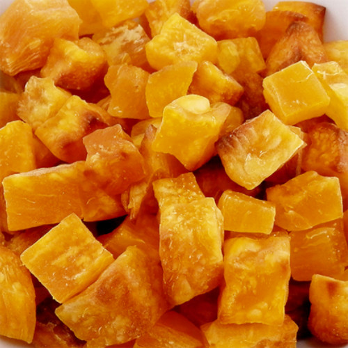 ●さつま芋を約1.5cmの一口サイズに角切りにしてから焼き芋風に丁寧に仕上げました。