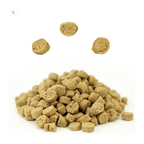 粗蛋白:18.5%以上、粗脂肪:11.0%以上 、粗繊維:2.5%以下、水分:10.0%以下、粗灰分:3.0%以下、代謝エネルギー:406kcal/100g