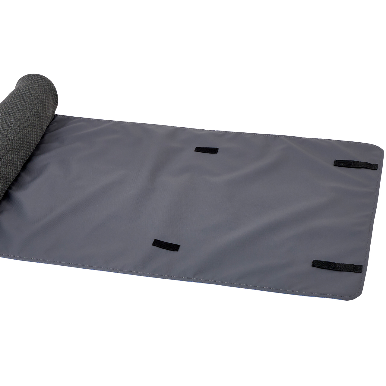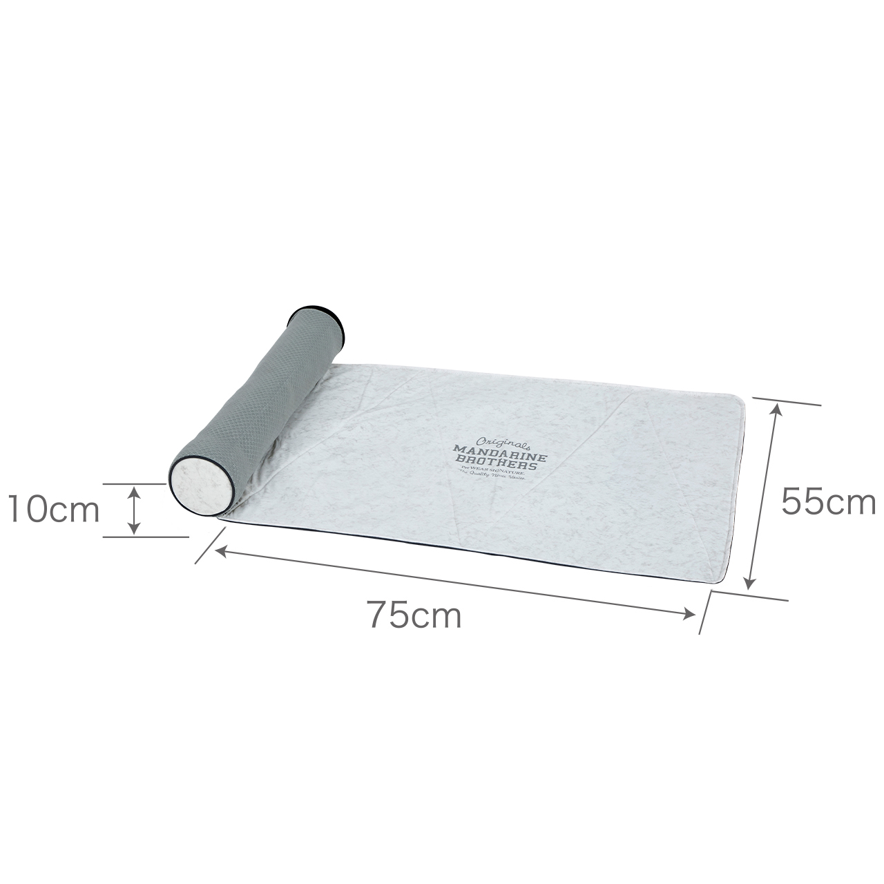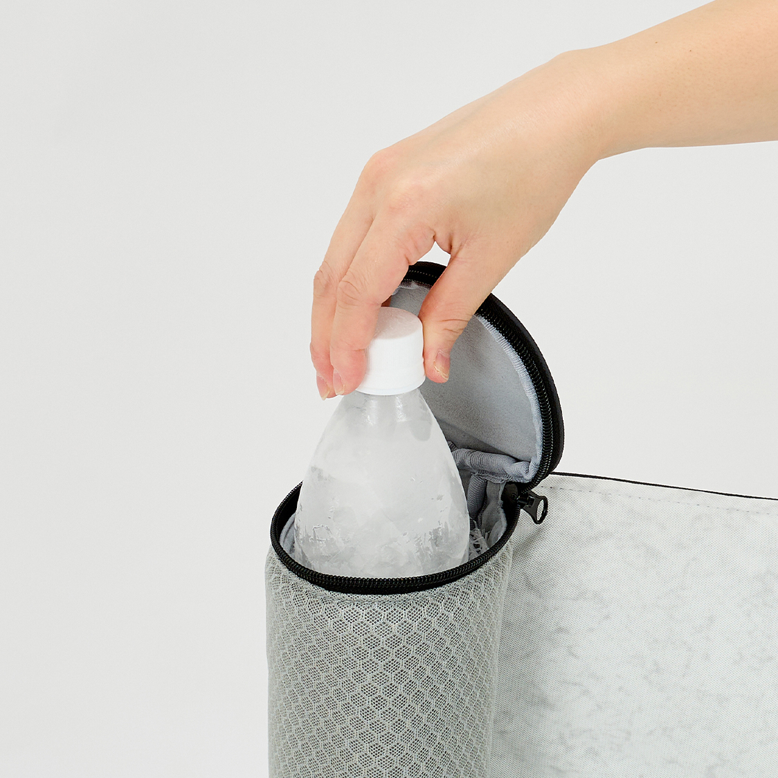 冷凍ペットボトル2本で長時間涼しさ持続!表面に接触冷感生地を使用でさらに快適。コンパクトに巻いて収納可能です。