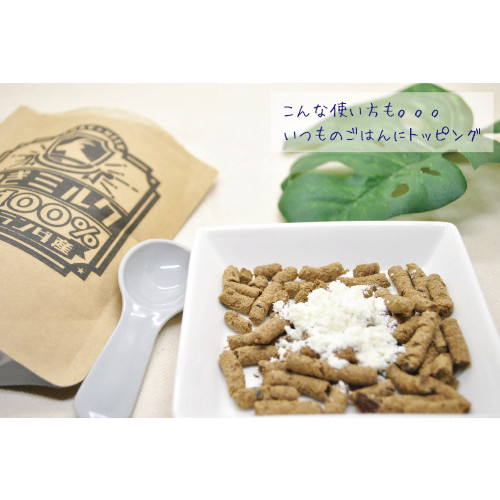 ヤギミルク100%の全脂粉乳です。子犬・子猫の成長用に、主食のふりかけなどに使用できます。