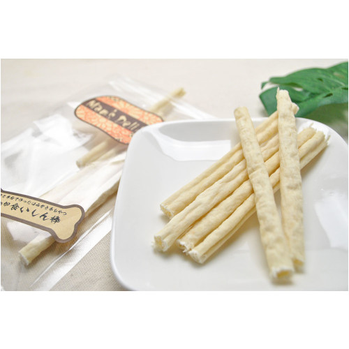 柔らかすぎず硬すぎず絶妙なバランスで食いつき抜群なスティックタイプおやつです。サイズ感・・・長さは約12cm 太さは約1cm。